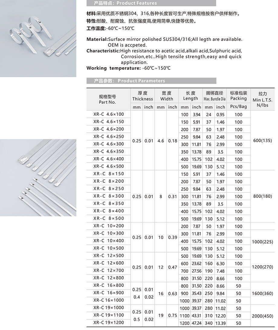 白鋼不銹鋼扎帶-滾珠自鎖式