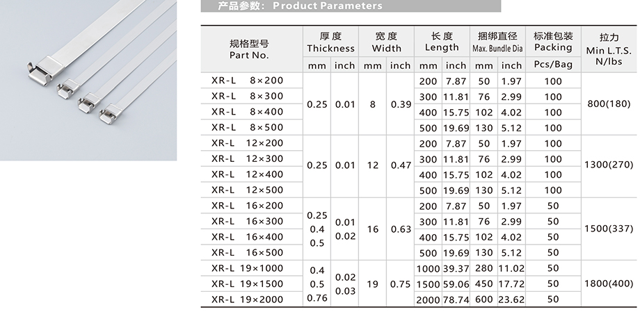 白鋼不銹鋼扎帶-滾珠自鎖式帶腳加強(qiáng)型