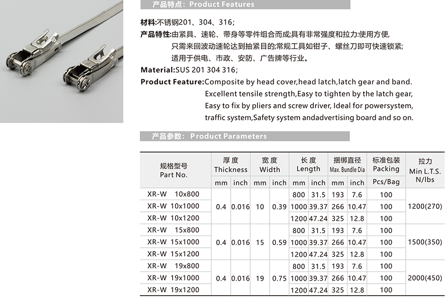 白鋼不銹鋼扎帶-滾珠自鎖式帶腳加強(qiáng)型